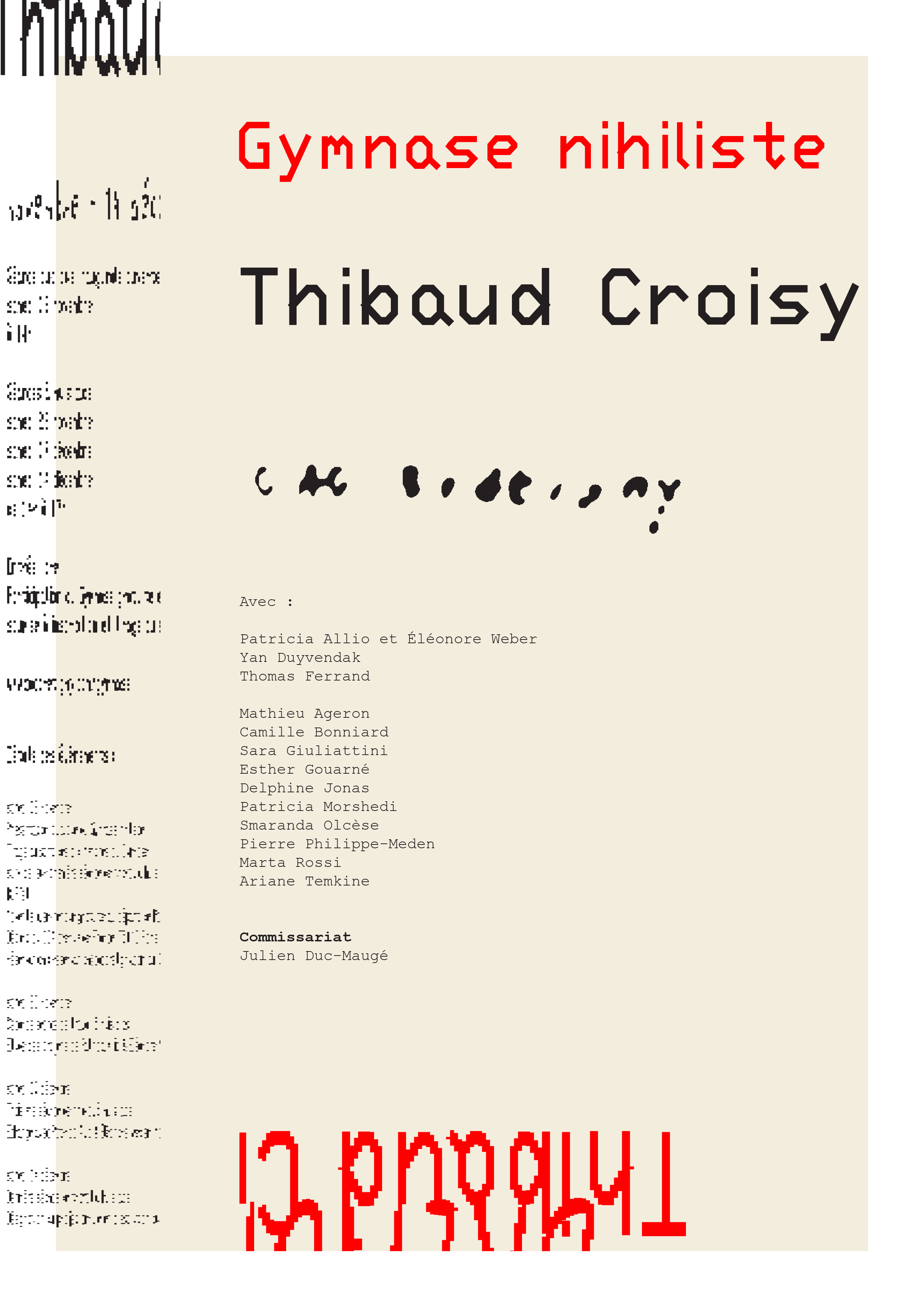 Membre du GYMNASE NIHILISTE, proposition de Thibaut CROISY, CAC Brétigny 2013